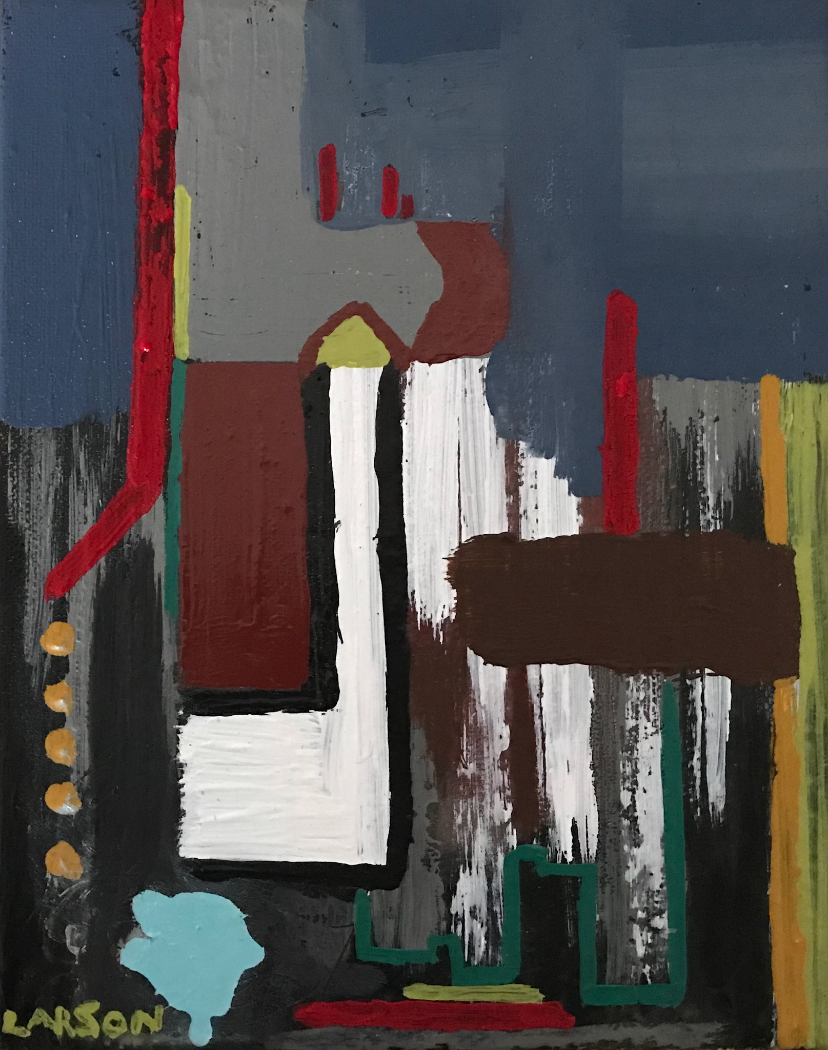 Construction; acrylic, spray paint, wax, 10" X 8"